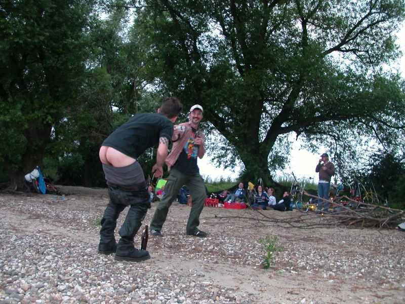Wurst grillen, Flintenwettbewerb, ab nach Bett.