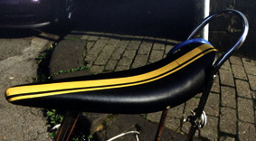 * Zweifarbiger Bananensattel schwarz/orange Streifen
