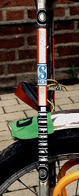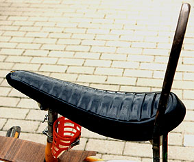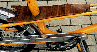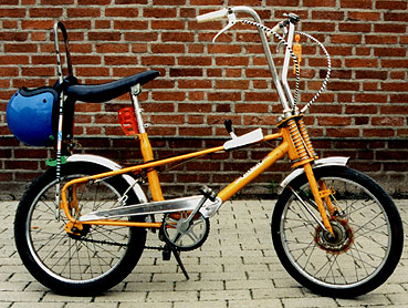 Ein recht quitschendes Bonanzarad mit einigen interessanten Besonderheiten: * Gewellter Glanzsattel * Mittelgestängeblechabdeckung "Pornostyle" * Sachs 3-Gang chrom * Aufgeklebte Hinteradfederung * 20 x 1.75 Veith Extra Prima - Bereifung * Extras: Dosenhalter unter dem Sattel, Kunststoffsklett links | ||||
